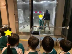 火災体験では、煙で視界が遮られている中、幼稚園の避難訓練の時を思い出しながら